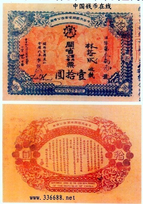 [图文]黄帝纪元4609年中华民国闽省军务公债票   10元         ★★★