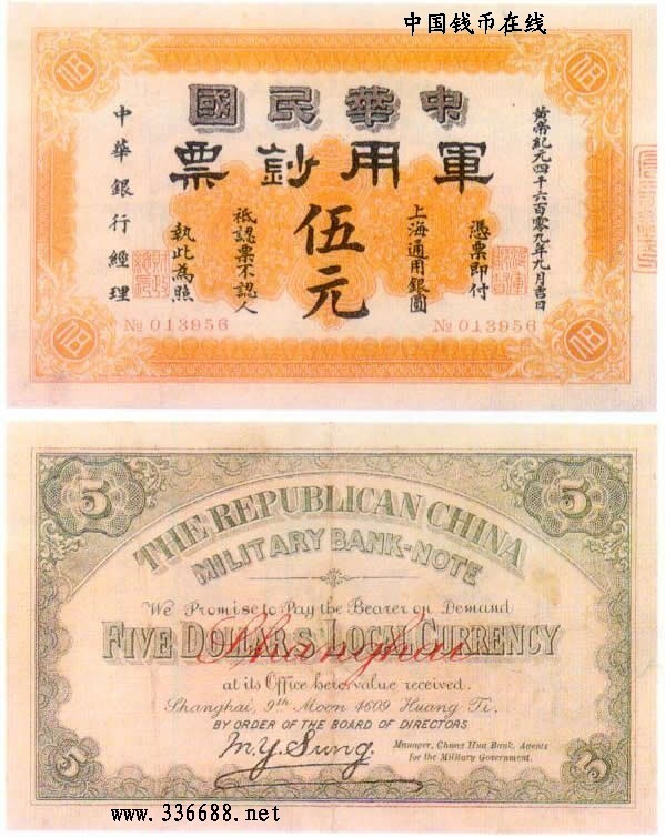[图文]黄帝纪元4609年中华民国军用钞票   5元         ★★★