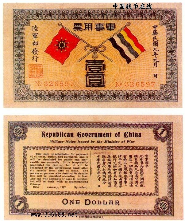[图文]民国元年陆军部军事用票   1元         ★★★