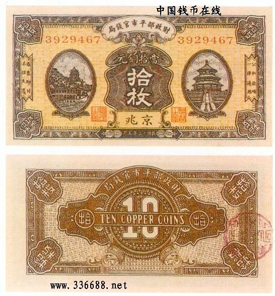 [图文]民国12年财政部平市官钱局铜圆券   10枚         ★★★