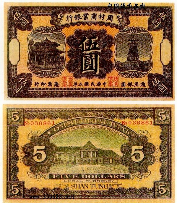 [图文]民国5年周村商业银行银元券   5元         ★★★