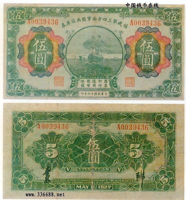 [图文]民国16年镇威第34方面军团兵站库券   5元         ★★★