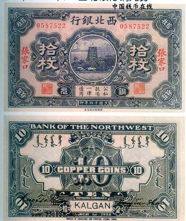 [图文]民国14年西北银行铜圆券   10枚         ★★★