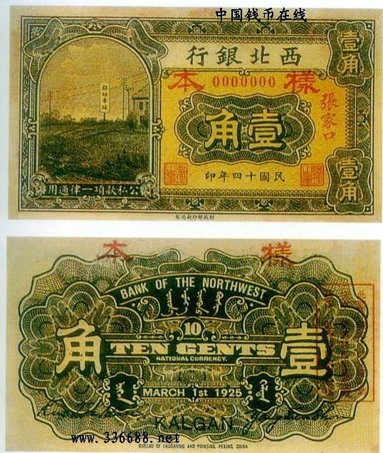 [图文]民国14年西北银行国币辅币券   1角         ★★★