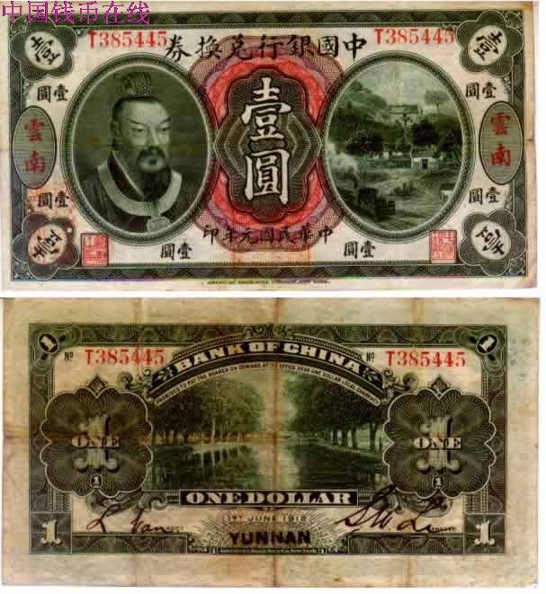 [图文]中国银行元年兑换券1圆加盖云南