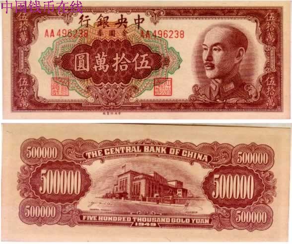 [图文]中央银行金圆券50万圆全新