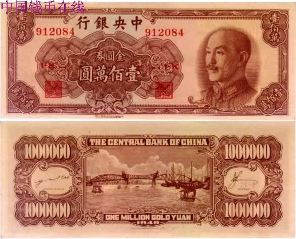 [图文]中央银行金圆券100万圆全新