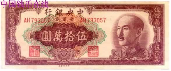 [图文]中央银行金圆券民国38年50万圆(中央厂)
