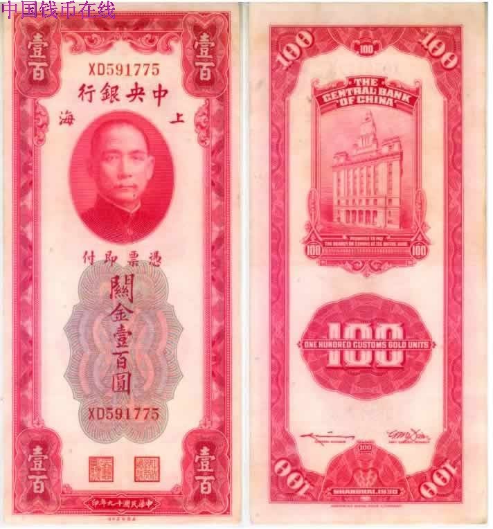 [图文]关金券美国版民国19年100圆