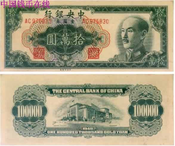 [图文]金圆券中央版民国38年10万圆(中央厂)