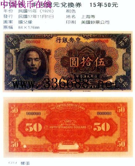 [图文]中央银元兑换券 15年50元         ★★★