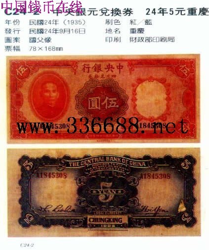 [图文]中央银元兑换券 24年5元重庆         ★★★