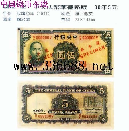 中央法币华德路版   30年5元