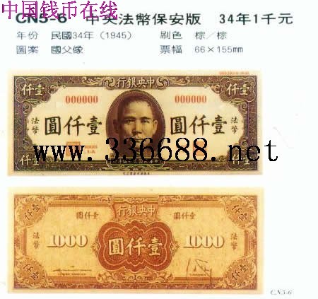 [图文]中央法币保安版   34年1千元         ★★★