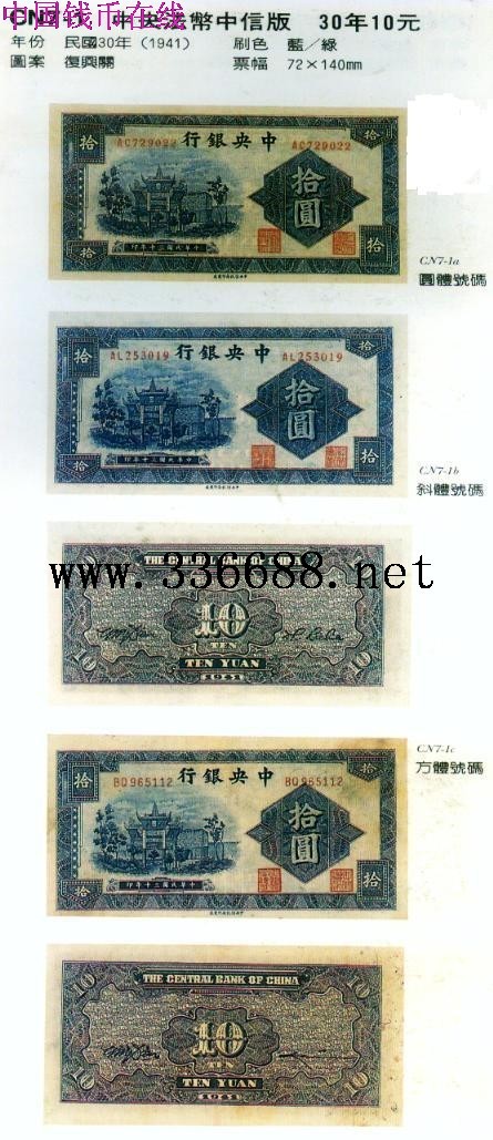[组图]中央法币中信版   30年10元         ★★★