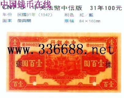 中央法币中信版   31年100元