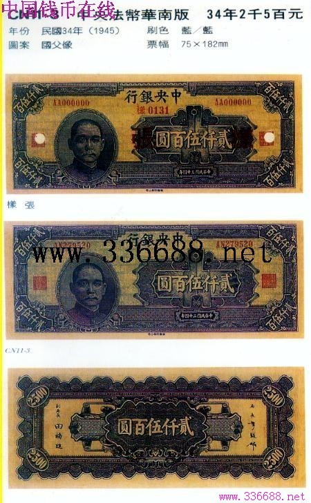 [图文]中央法币华南版   34年2千5百元         ★★★
