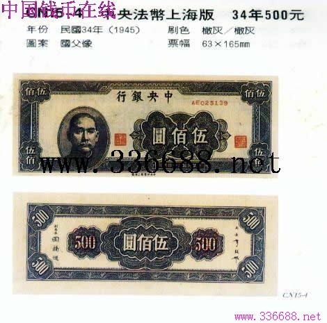 [图文]中央法币上海版   34年500元         ★★★