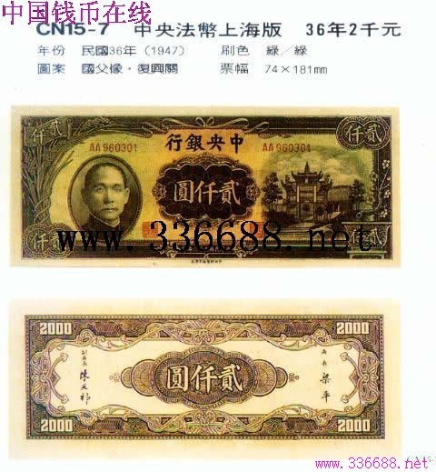 [图文]中央法币上海版   36年2千元         ★★★