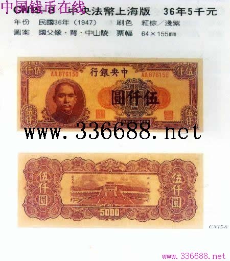 [图文]中央法币上海版   36年5千元         ★★★