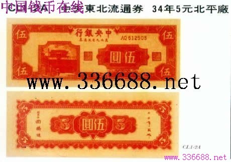 [图文]中央东北流通券   34年5元北平厂         ★★★