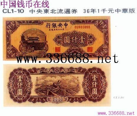 [图文]中央东北流通券   36年1千元中华版         ★★★