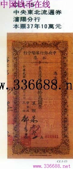 [图文]中央东北流通券 潘阳分行 本票37年10万元         ★★★