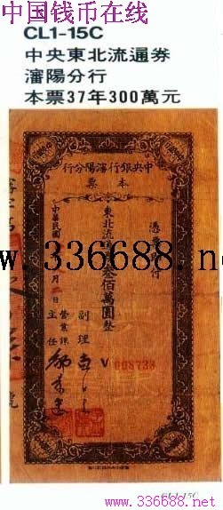 [组图]中央东北流通券 潘阳分行 本票37年300万元         ★★★