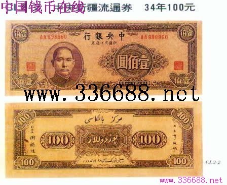 [图文]中央新疆流通券   34年100元         ★★★