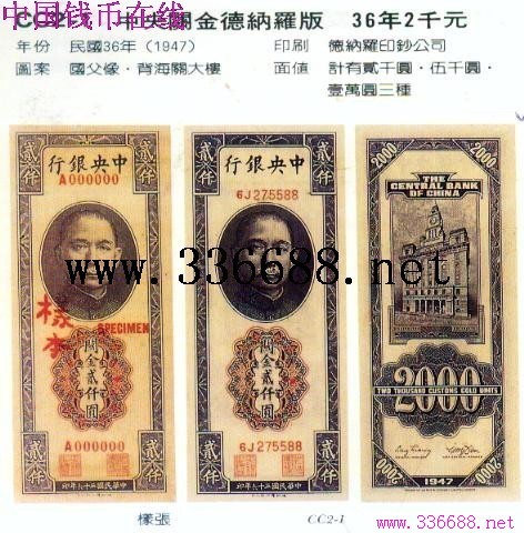 [图文]中央关金德纳罗版  36年2千元         ★★★