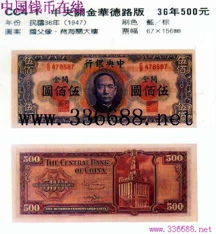 [图文]中央关金华德路版  36年500元         ★★★