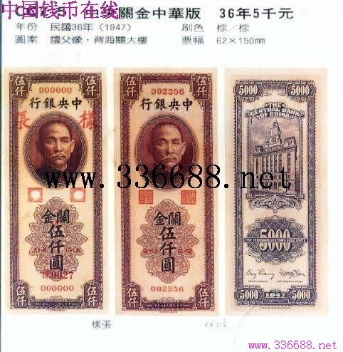 [图文]中央关金中华版  36年5千元         ★★★