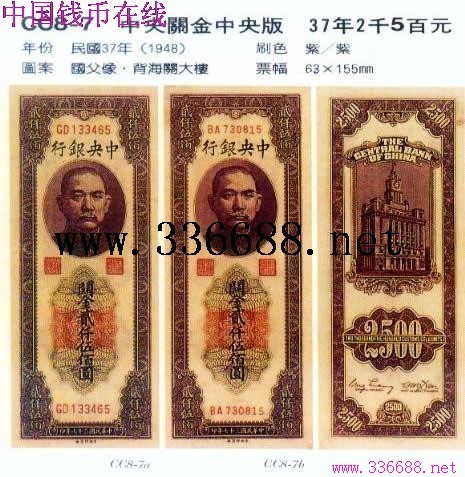 [图文]中央关金中央版  37年2千5百元         ★★★