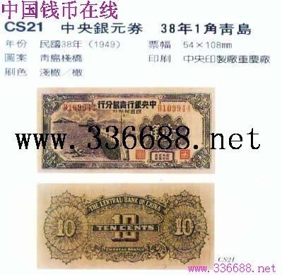[图文]中央银元券   38年1角青岛         ★★★