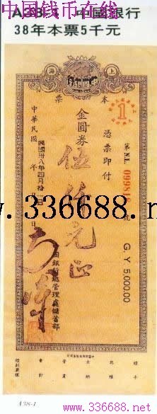 农民银行   金圆券本票