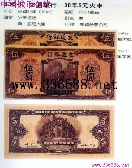 交通银行   30年5元火车