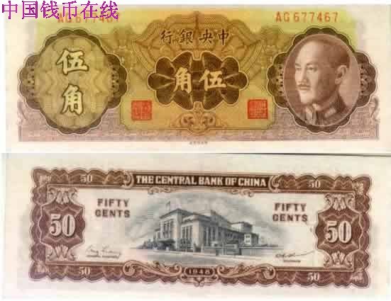 普通民国纸币[图文]中央银行金圆券民国37年5角刘扬09-27