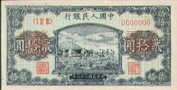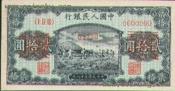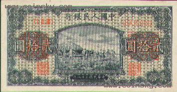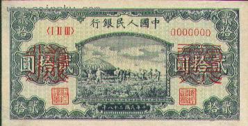 十六、贰拾圆打场票样有单张式及双张式,票券底纹颜色有深浅变化。单张式:双张式: