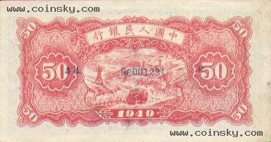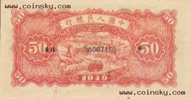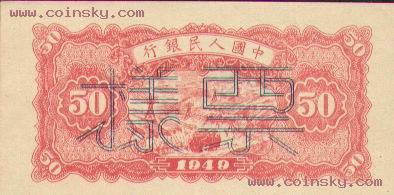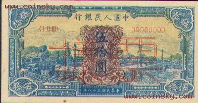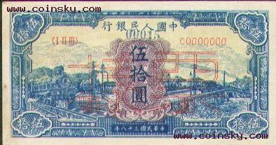 二十、伍拾圆:蓝火车大桥票样有单张式及双张式,票券底纹颜色有深浅变化。单张式: 双张式: