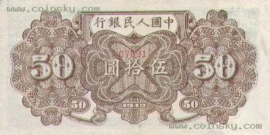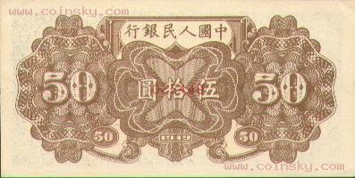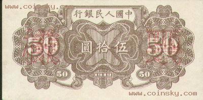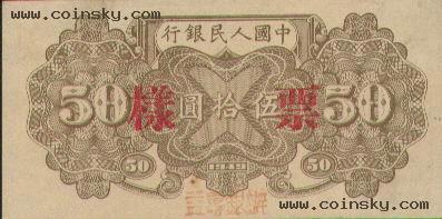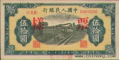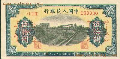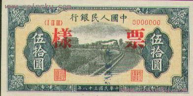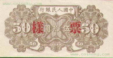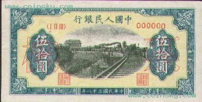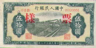 二十一、伍拾圆列车(六位数)票样有单张式及双张式,票券底纹颜色有深浅变化。单张式: