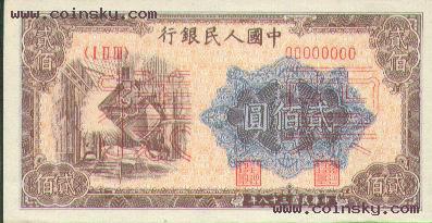 三十七、贰佰圓钢铁厂(炼钢)票样有单张式及双张式。单张式: