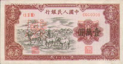 五十八、壹万圆牧马票样只有双张式。双张式: