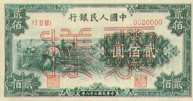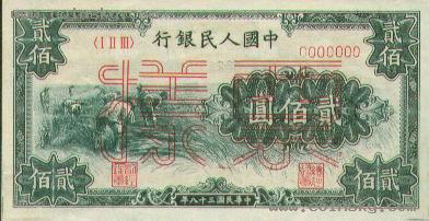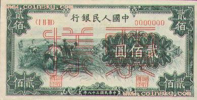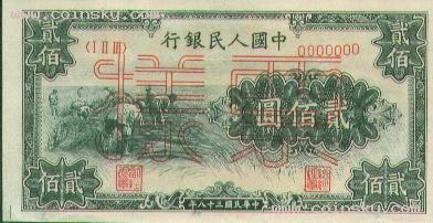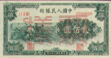 三十八、贰佰圓割稻票样有单张式及双张式。单张式:双张式: