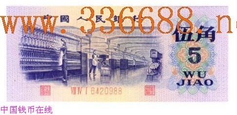 [图文]第三版人民币伍角平水印版马尾号88(全新)