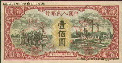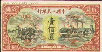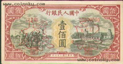 二十五、壹佰圆耕地工厂票样有单张式及双张式。