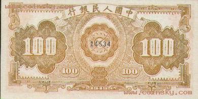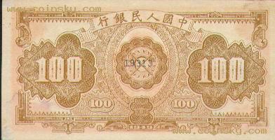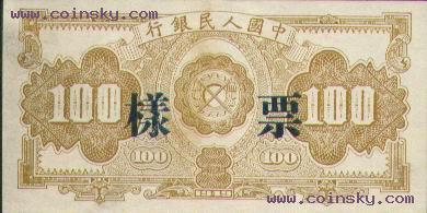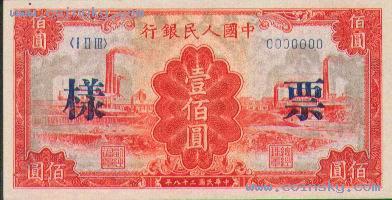 二十八、壹佰圆红工厂票样有单张式及双张式,票券(底纹)颜色有深浅变化。