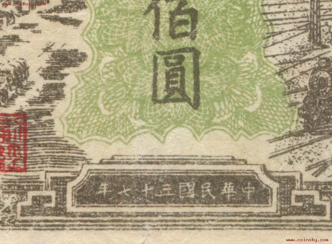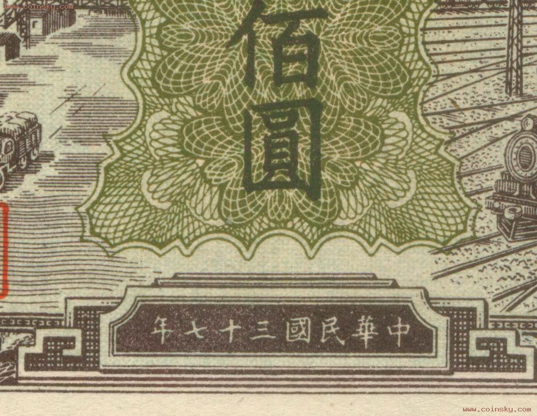 壹佰圆工厂火车真假局部对照图(五):A:为真票;B:为版式一的老假票,C:为版式二的老假票。 A:B:C: