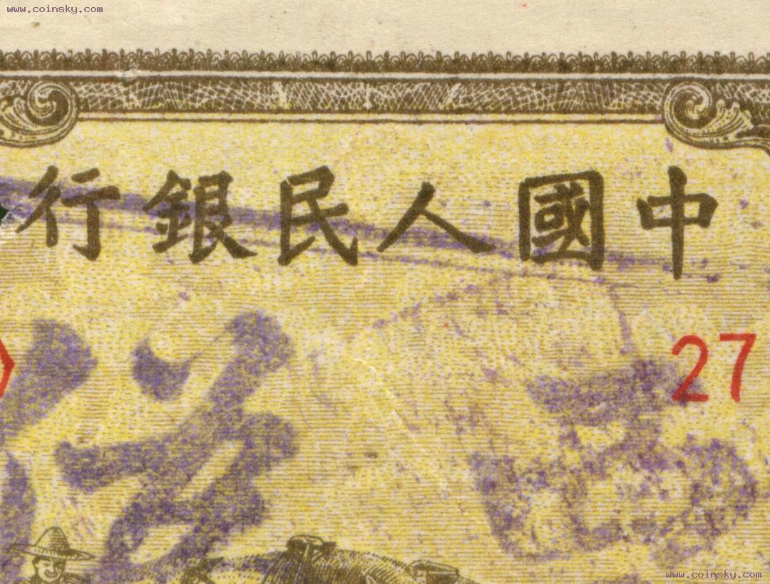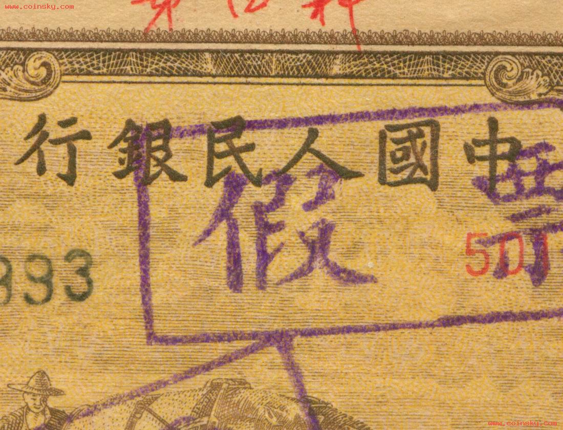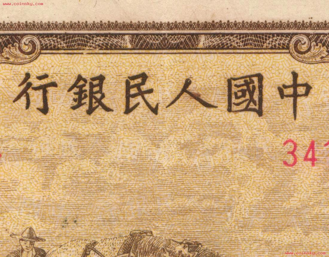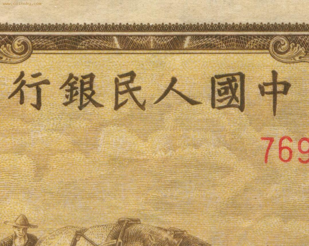 壹万圆双马耕地真假局部对照图(二):A:为真票;B:为版式一的老假票,C:为版式二的老假票,D:为版式三的老假票,E:为版式四的老假票,F:为版式五的老假票。 A:B:C:D:E:F: