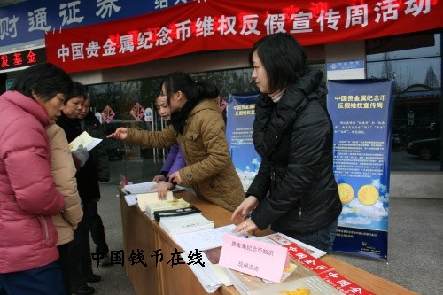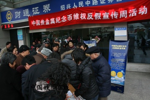为维护国家法定货币形象和中国金币品牌,积极响应中国金币总公司组织的贵金属纪念币维权反假活动的号召,中国金币浙江省特许经销商――裕隆控股集团有限公司积极行动起来,在绍兴地区通过大范围的媒体宣传和活动宣传,全面启动了“中国贵金属纪念币维权反假宣传周”活动。