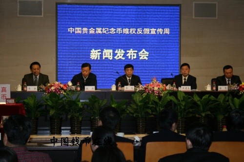 为了维护国家法定货币形象,维护中国金币品牌,维护消费者权益,推进中国金币事业平稳、健康、协调、持续发展,中国金币总公司于12月22日隆重启动中国贵金属纪念币维权反假宣传周活动。在活动启动新闻发布会上,中国金币总公司董事长李龙发表了重要讲话,同时在发布会现场陈列了大量的真假金银币、正规渠道金银币媒体宣传与虚假宣传的对比,供与会人员参阅及比对。通过真假实物的对比、比较,进一步深化中国贵金属纪念币防伪基础知识,强化品牌意识,熟知真假金银币概念,巩固国家法定货币形象,拥护中国金币品牌。
